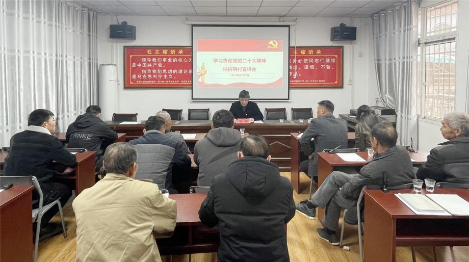 2月22日,磁湖高新公司黨委委員、總會(huì)計(jì)師陸剛赴汪仁鎮(zhèn)枯樹咀村宣講黨的二十大精神,鼓勵(lì)該村黨員干部進(jìn)一步提升鄉(xiāng)村治理能力和水平,奮力譜寫鄉(xiāng)村治理新篇章。