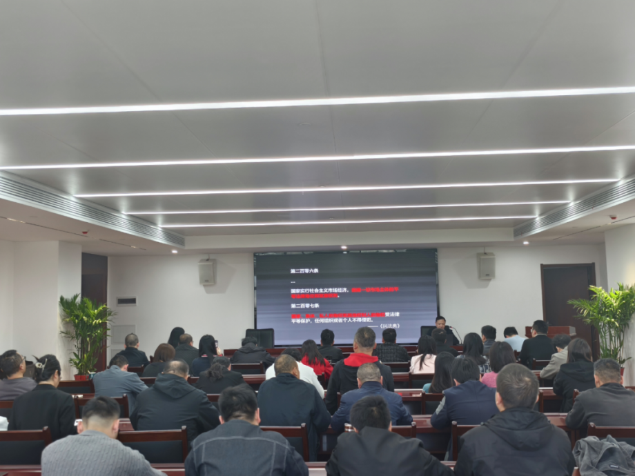為進(jìn)一步增強(qiáng)全員法律風(fēng)險防范意識,全面提升依法治企、合規(guī)經(jīng)營能力,10月24日,磁湖高新公司特邀法律顧問周江龍律師,組織開展《民法典》專題培訓(xùn)。公司50余名員工參加培訓(xùn),共同學(xué)習(xí)法律知識,夯實風(fēng)險防控基礎(chǔ)。